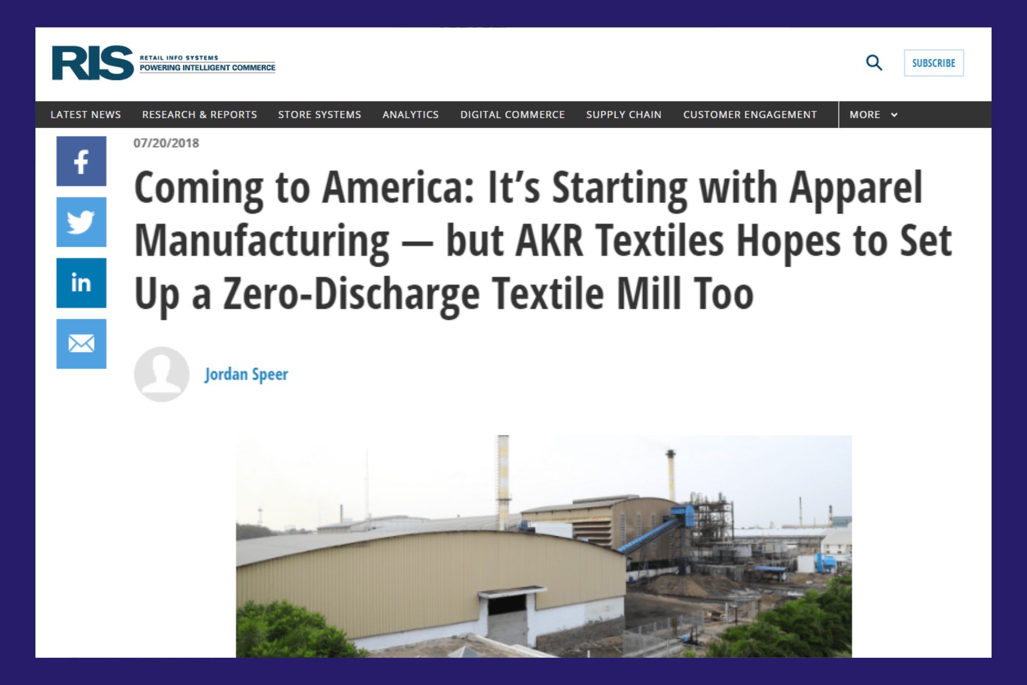 Coming to America: It’s Starting with Apparel Manufacturing — but AKR Textiles Hopes to Set Up a Zero-Discharge Textile Mill Too